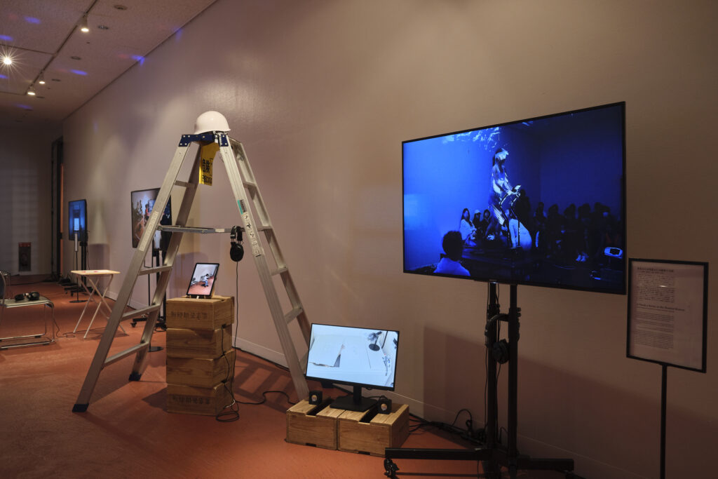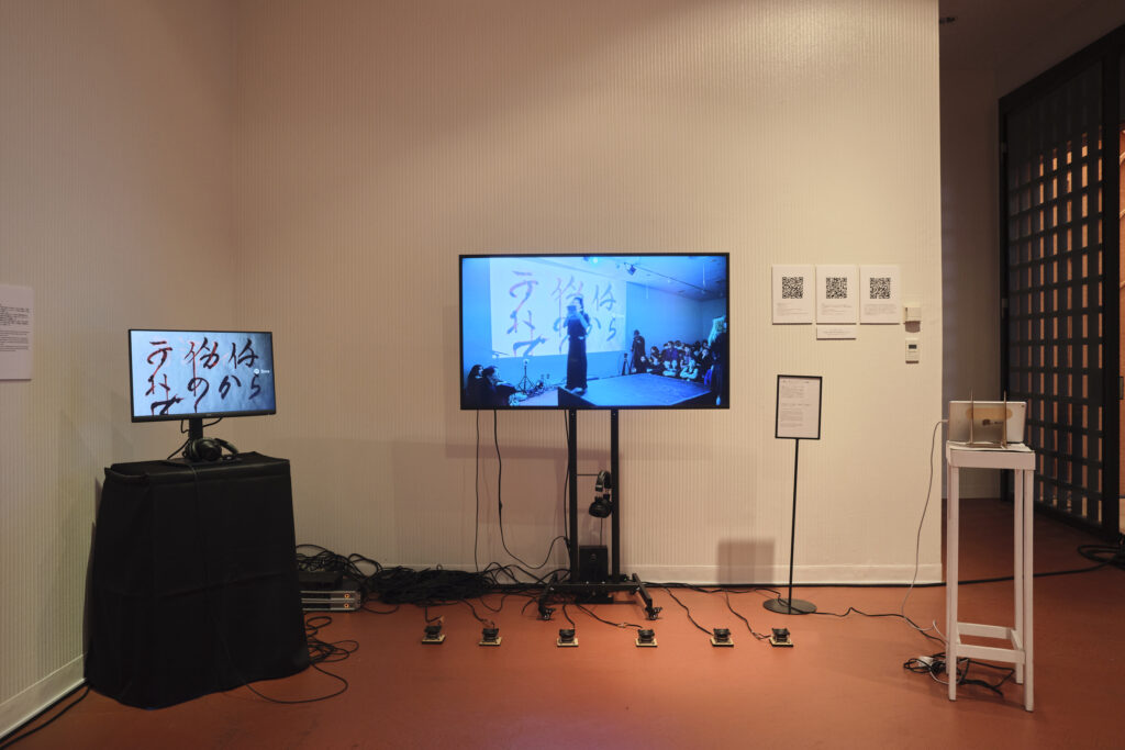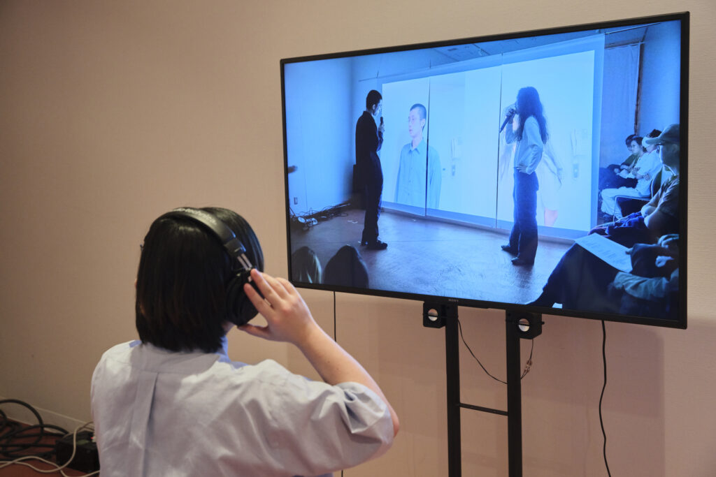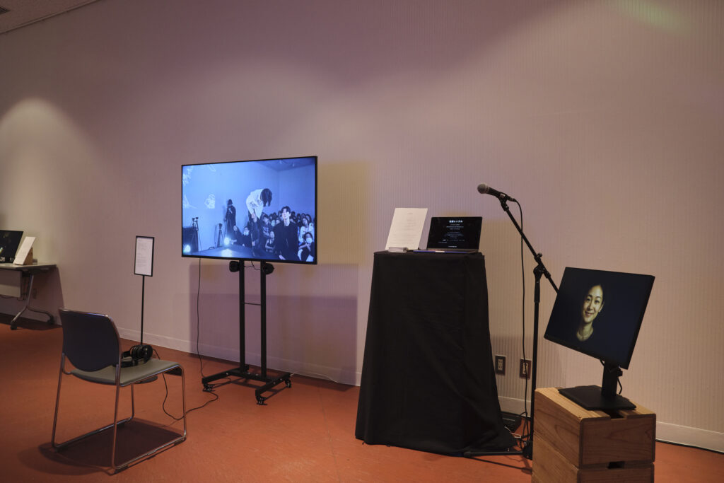This performance is based on Gertrude Stein’s 1922 conversational play, I Like It to Be a Play. During the 15-minute runtime, a video of the same content is repeated twice, once in the first half and again in the latter half. The video is composed of recitation audio, impersonations, electronic sound, karaoke subtitles, and an alternate audio track. This enacts “conversations” enfolded with Stein’s original text in English, its multiple translations in Japanese, and the three performers’ off-stage relationship. Or it exposes some pretext required for the staging—for instance, something like this very text. In other words, it is a performance built on such pretexts or excuses, demanding a narrative layered with tension: that is, a performance of deception.