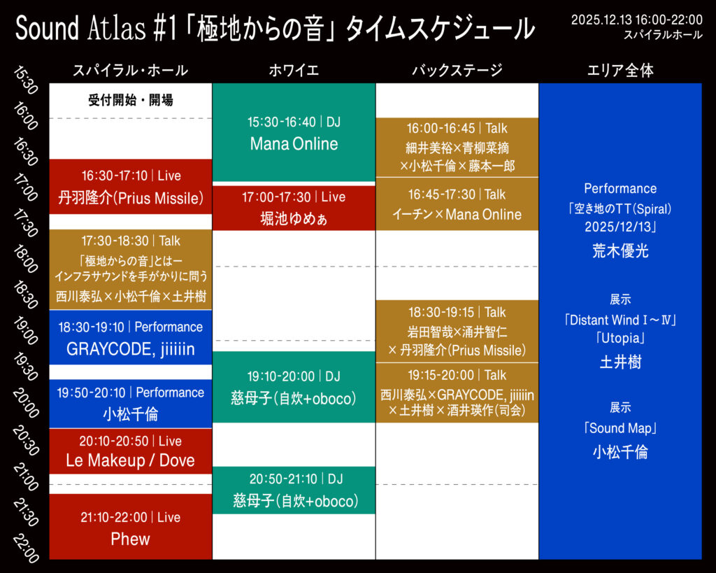 課題のすべてが解決されたわけではありませんが、リニューアルを機に、これらの制限を逆手に取り、従来の枠に収まらない、しかし「音」そのものの本質を捉え直すプロジェクト「Sound Atlas(サウンド・アトラス)」を始動します。そして、第一弾のイベントとして「Sound Atlas #1『極地からの音』」を音楽家・小松千倫との共同キュレーションにより開催します。